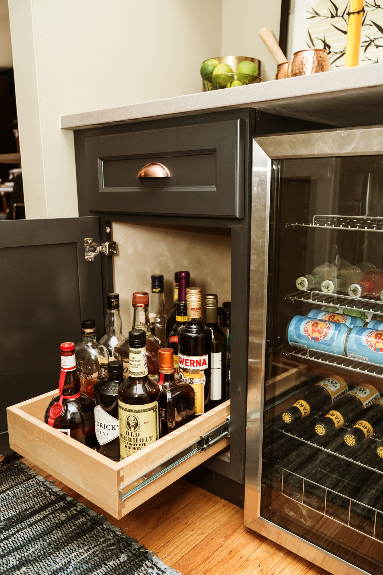 • A reimagined laundry closet, transformed into a functional beverage bar for entertaining all ages