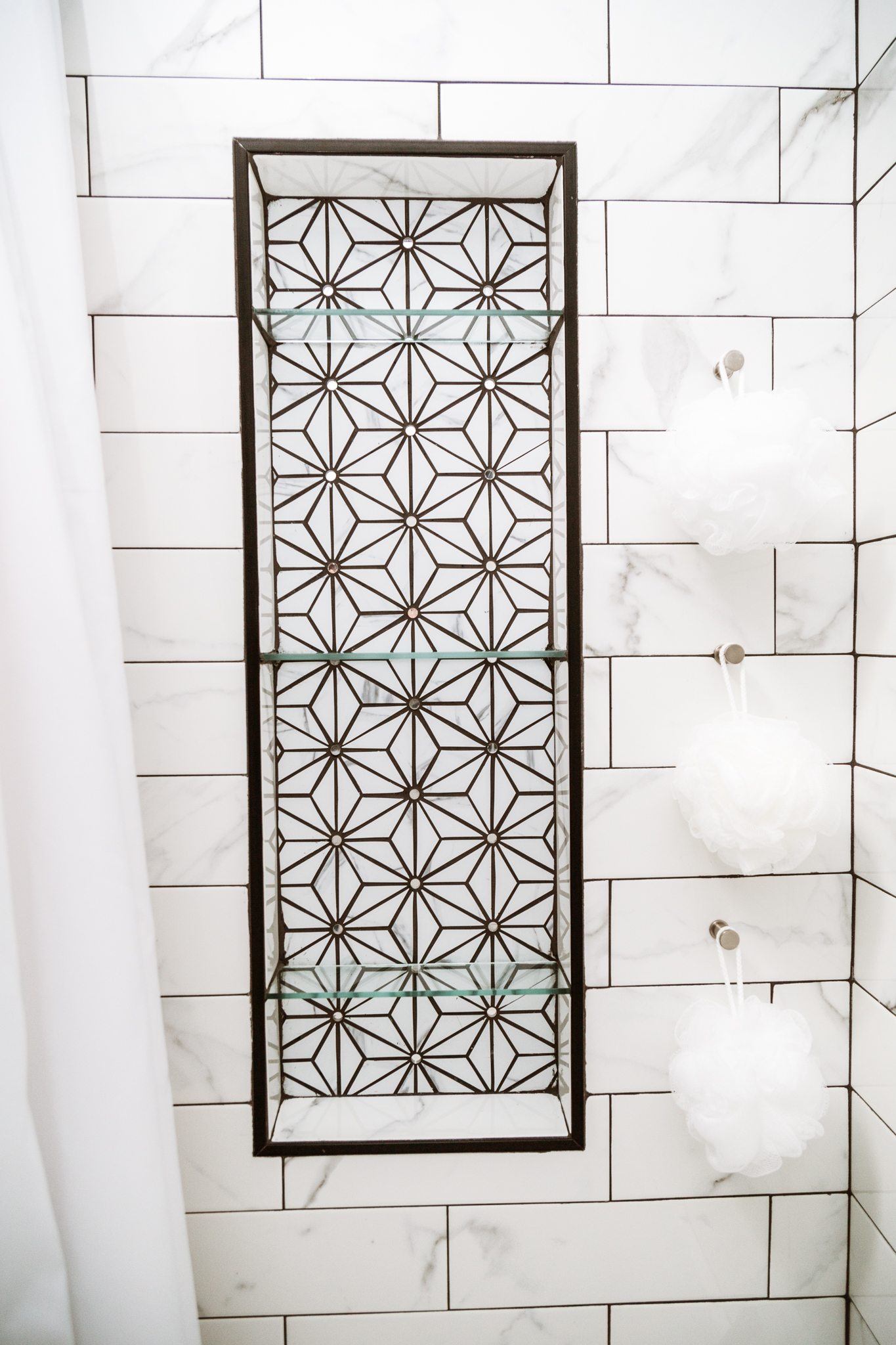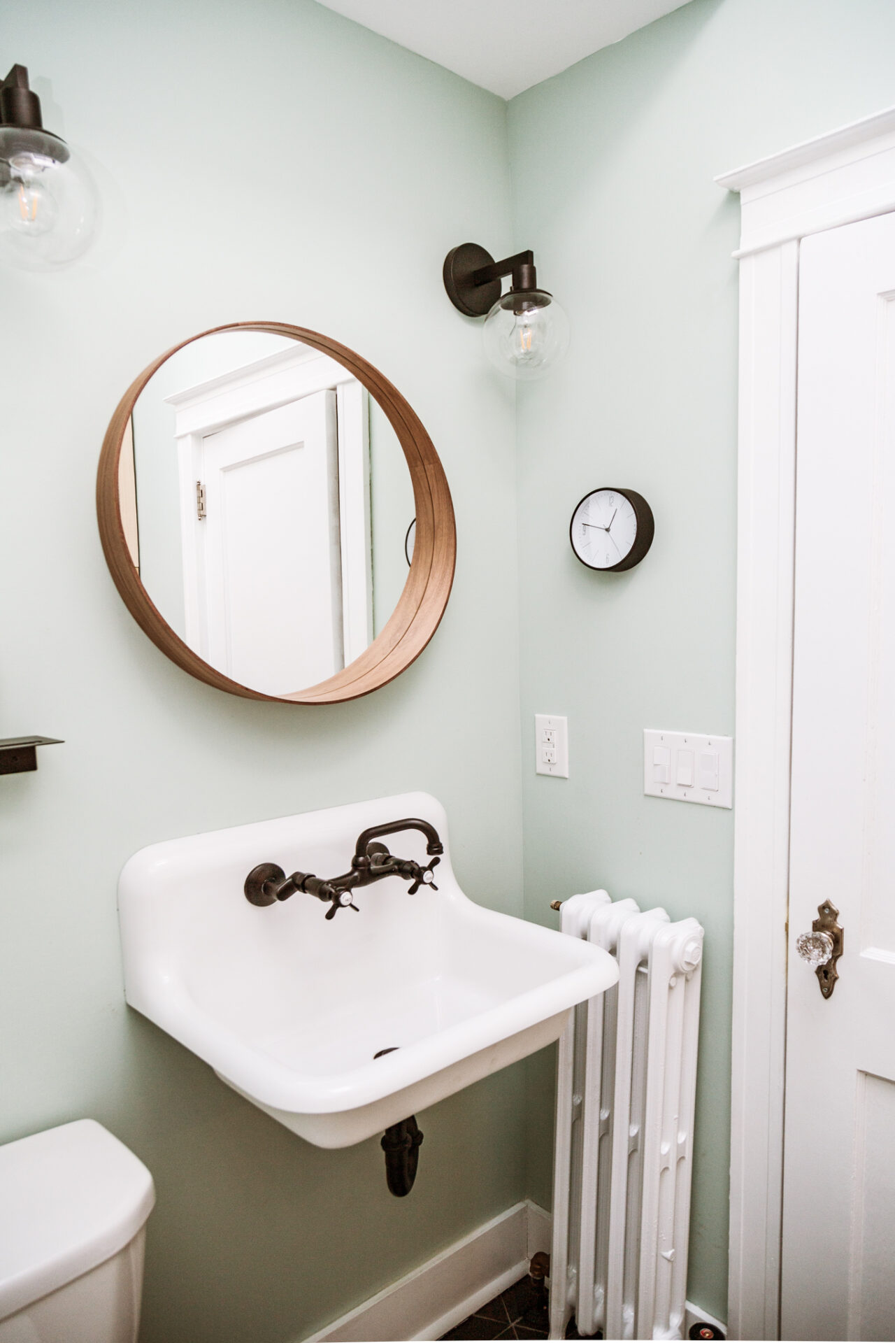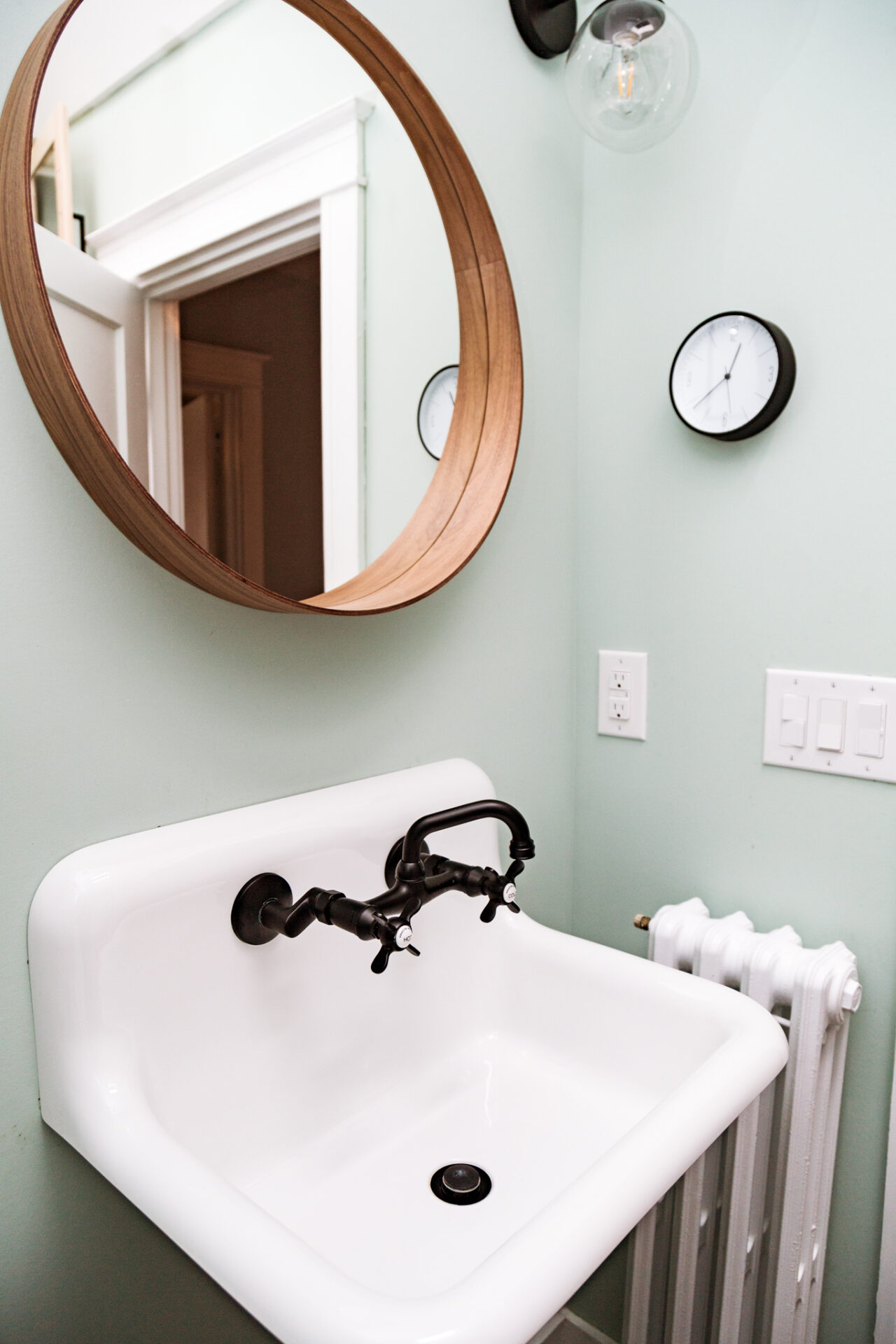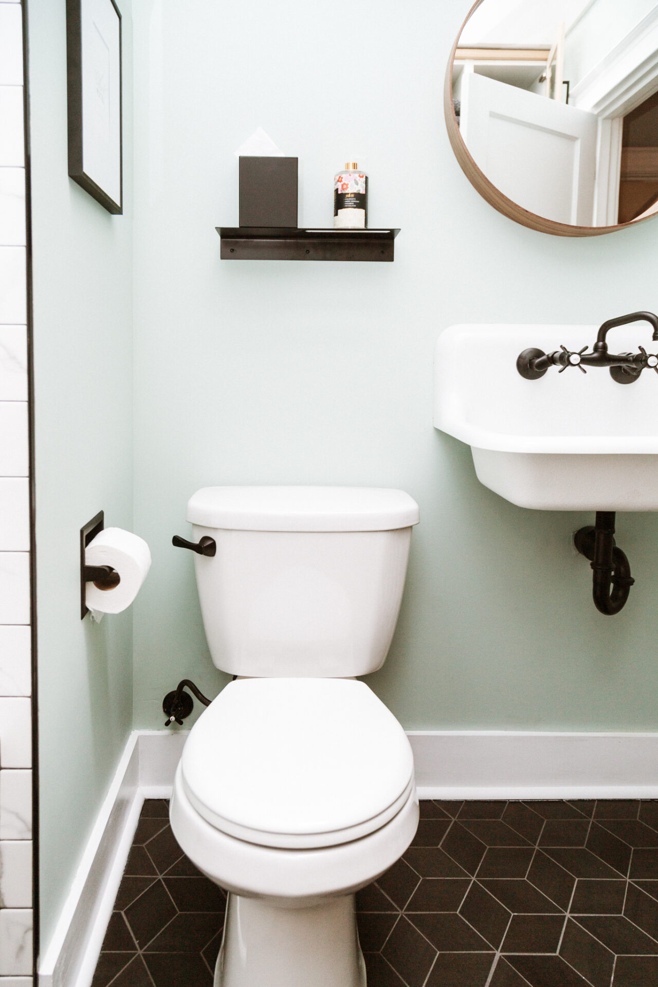 The aesthetic was equally intentional. A light, airy Scandinavian-inspired foundation—soft seafoam tones, light woods, and natural brightness—was paired with darker fixtures and accents to create contrast and depth. This balance served as a thoughtful compromise between the male(s) + female occupants, blending a softer, more tranquil feel with bold, grounded elements that add a sense of structure and sophistication.