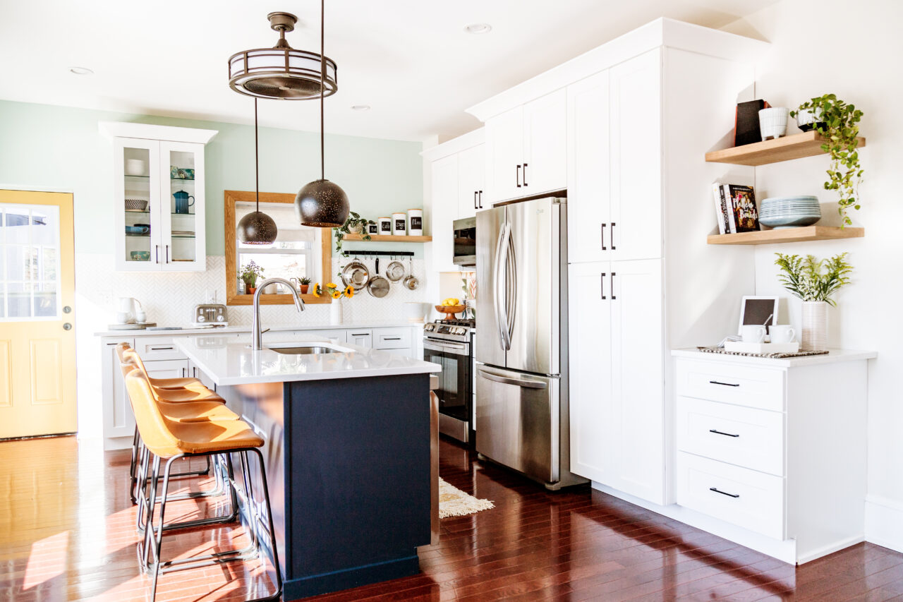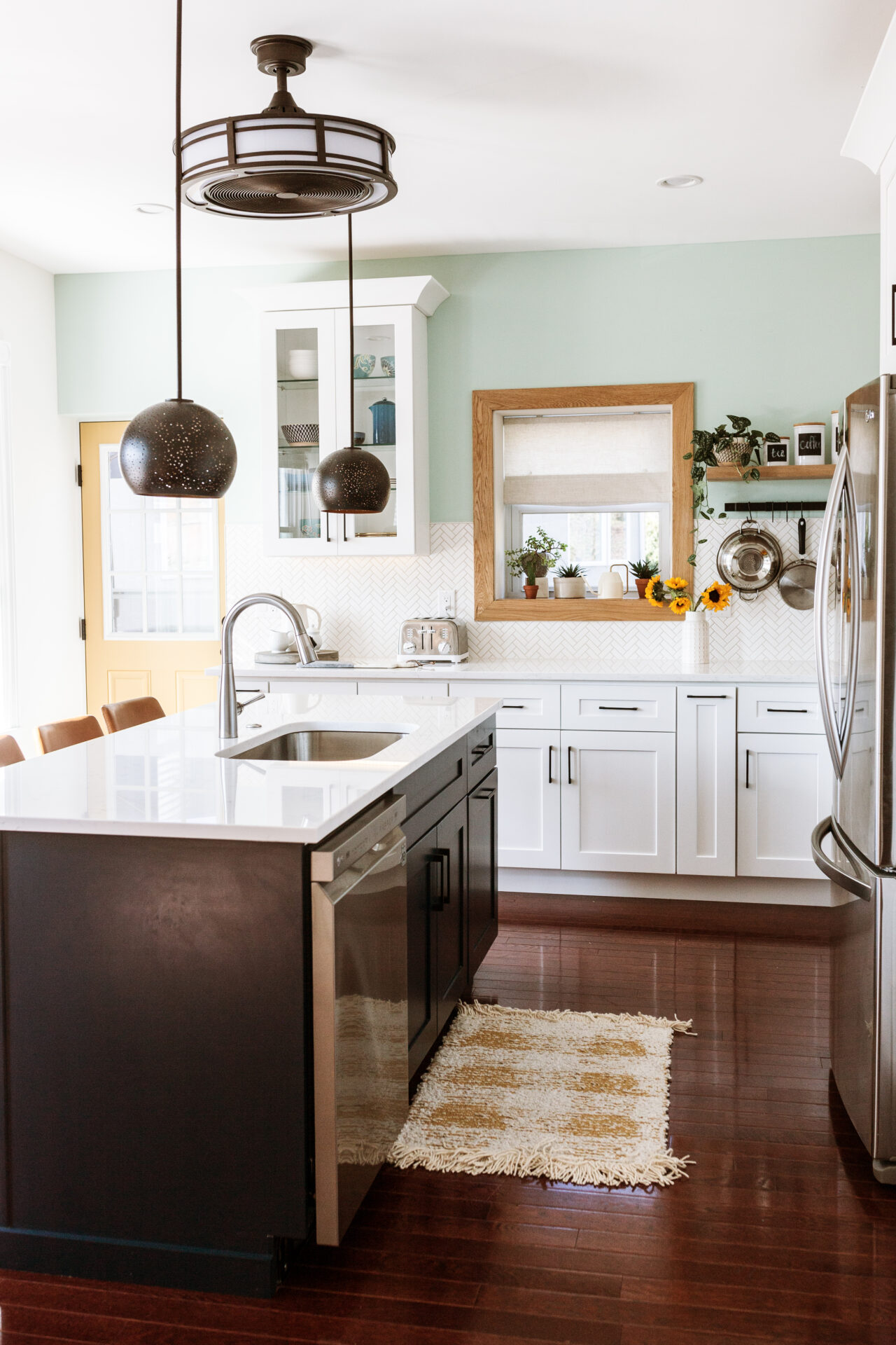It’s hard to imagine this kitchen’s starting point—pegboard backsplash, the dishwasher located in a separate room, limited square footage, and a layout that doubled as the main walkway to the backyard. Add in minimal natural light, and the space felt disconnected, inefficient, and underutilized.