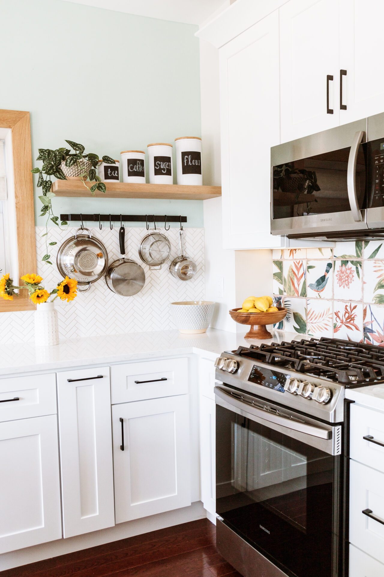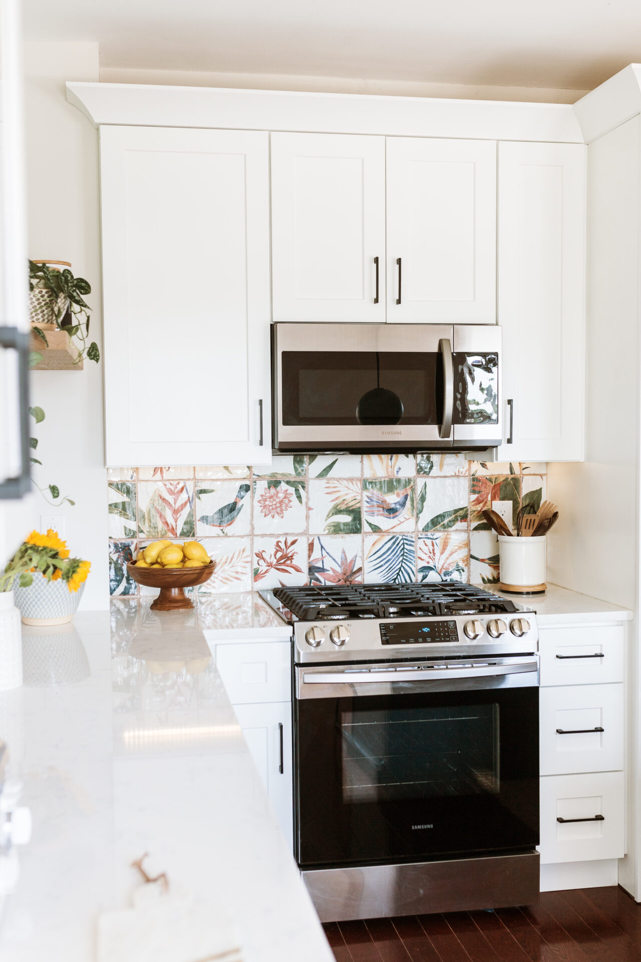 The design blends warmth, personality, and playfulness through a mix of bright colors, layered textures, and expressive patterns—all grounded with a sense of balance and elegance. The result is a kitchen that feels collected, inviting, and uniquely reflective of the family who lives there.